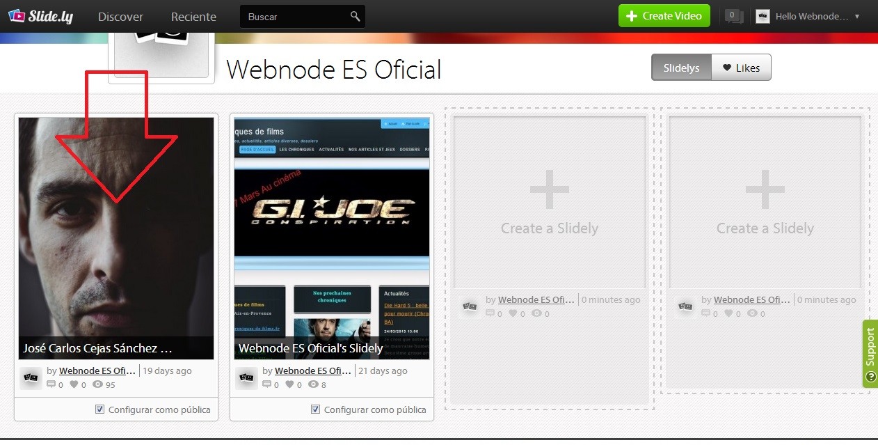 B. Ahora pasaremos a todas las presentaciones que tenemos, entonces haremos clic sobre la que querremos insertar en nuestra pagina de Webnode: