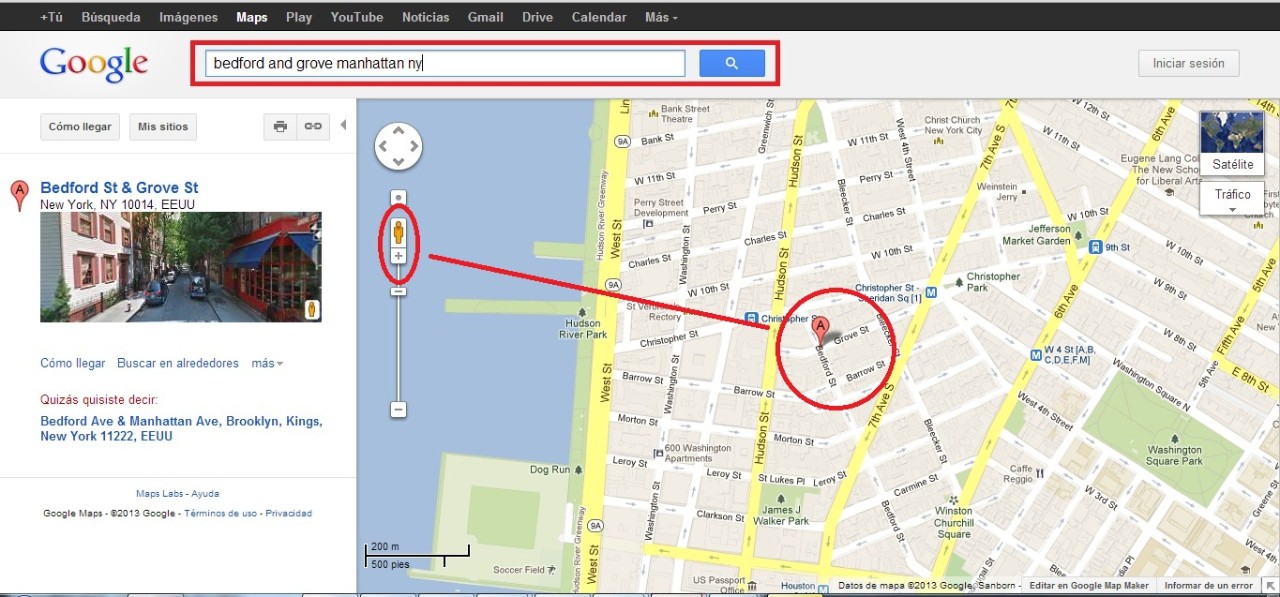 2. En la caja de búsquedas introducimos la dirección completa y hacemos clic en la lupa de la derecha.